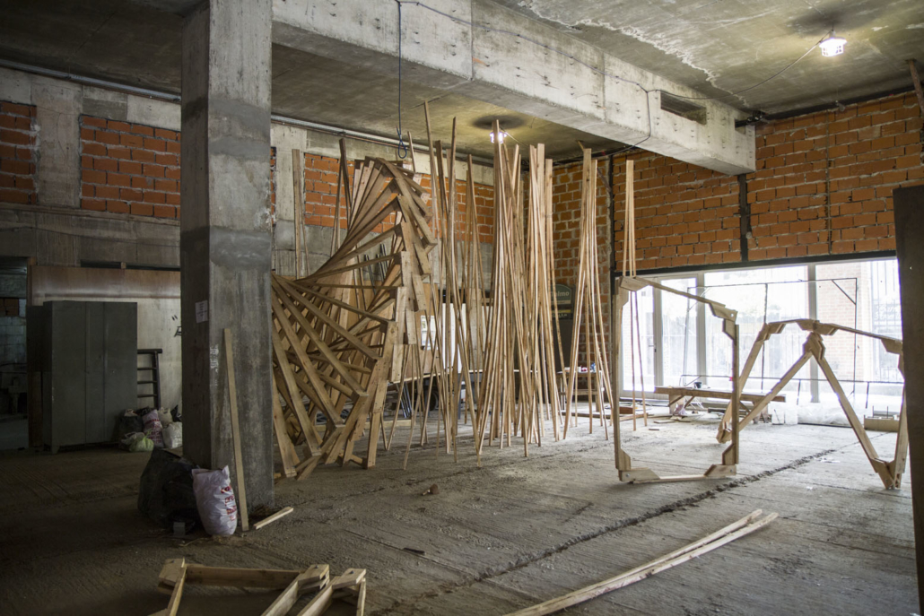 «Espiral» / Madera, alambre 750 x 420 cm