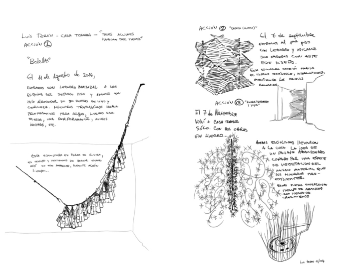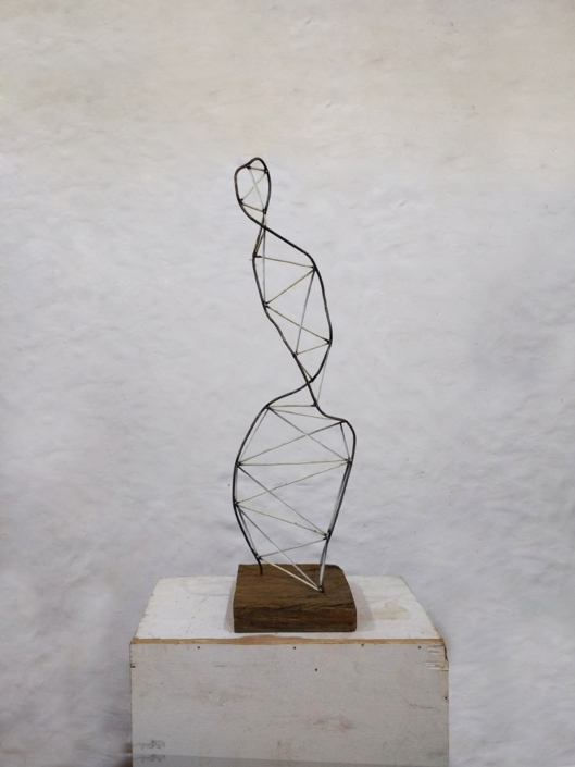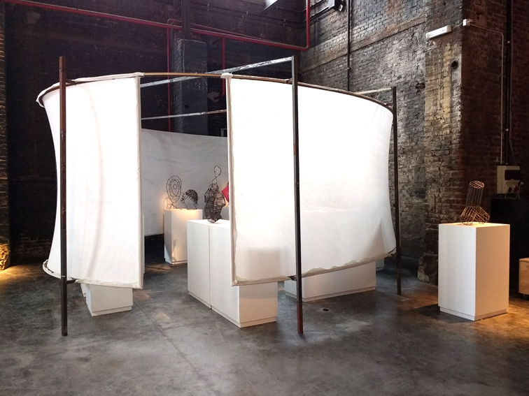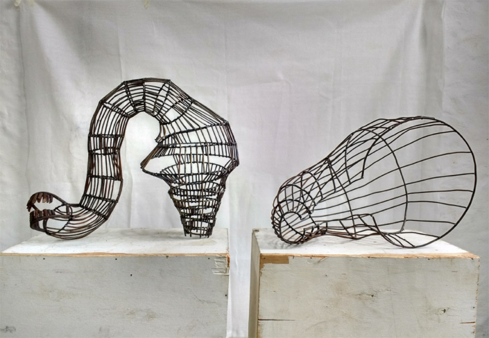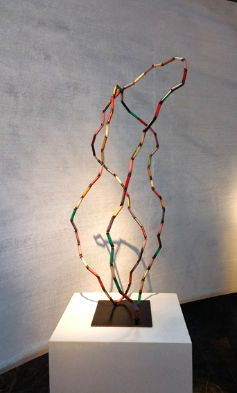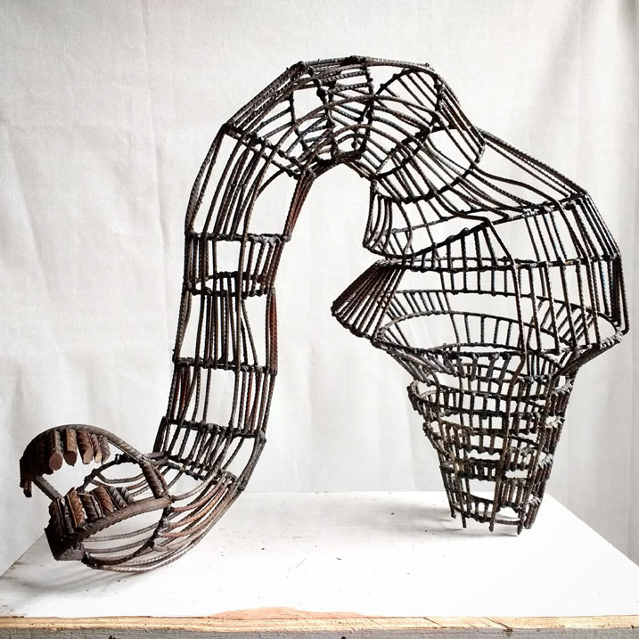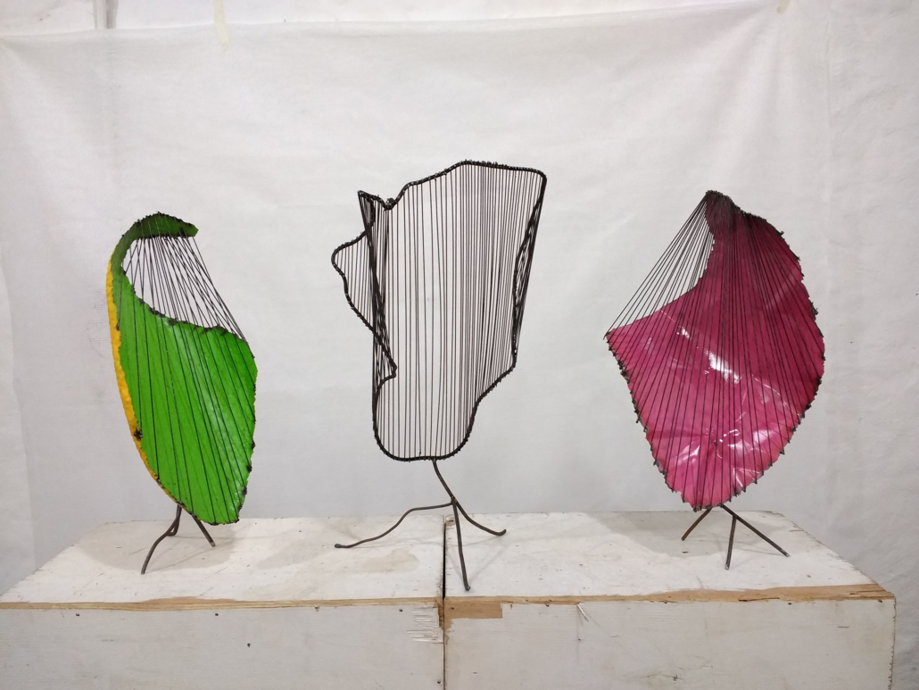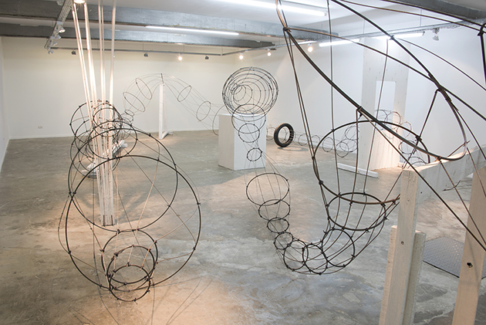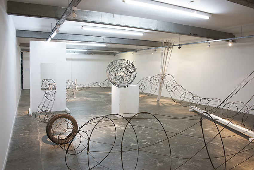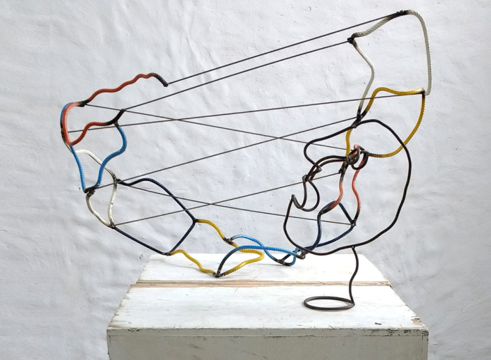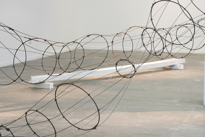 Hierro atado con polietileno, madera pintada. Escultura in situ.